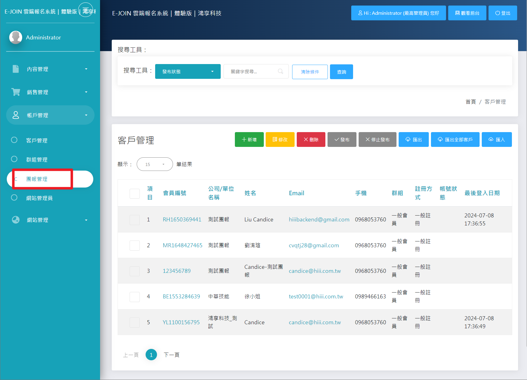 - 點選左側選單【帳戶管理】中的【團報管理】